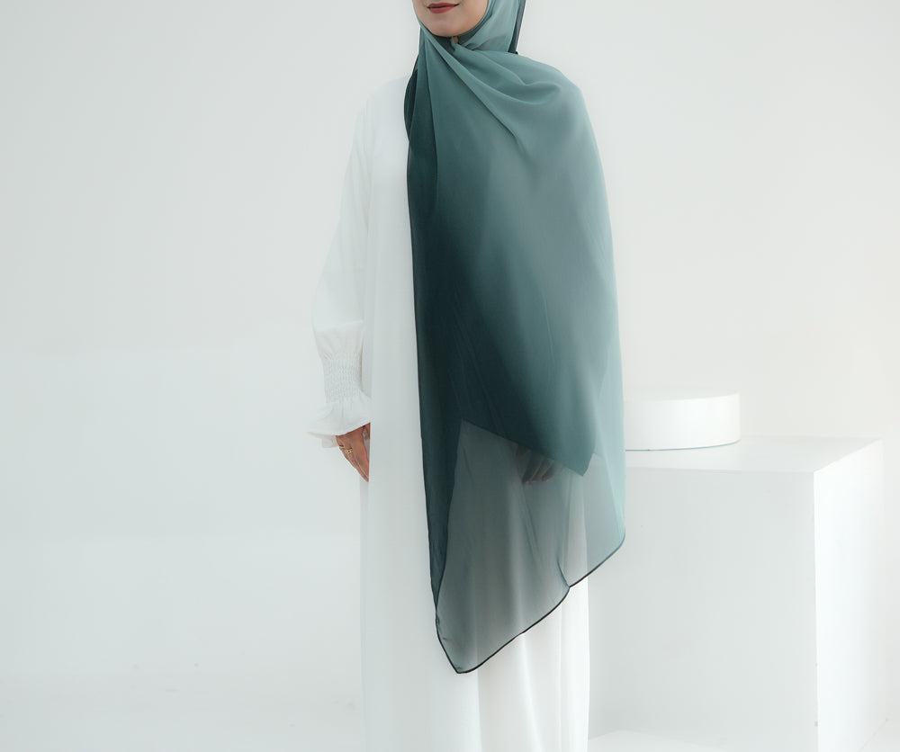 Emerald Ombre scarf rectangular hijab in chiffon premium quality