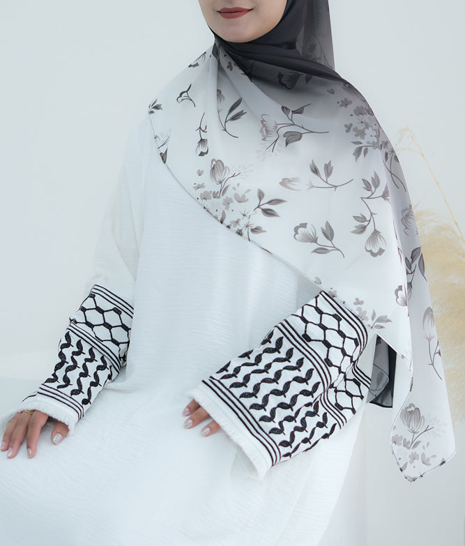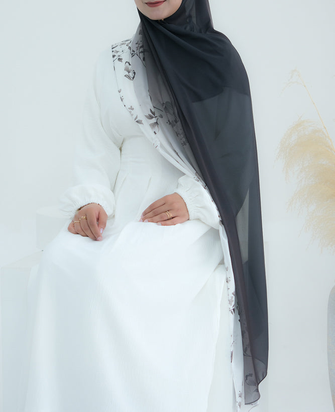 Crafted from premium quality chiffon, this hijab exudes both luxury and modesty. The delicate fabric has a silky smooth texture and is lightweight, effortlessly falling into an elegant floral pattern.