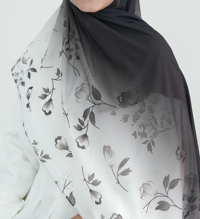 Ombre Floral scarf rectangular hijab in chiffon premium quality